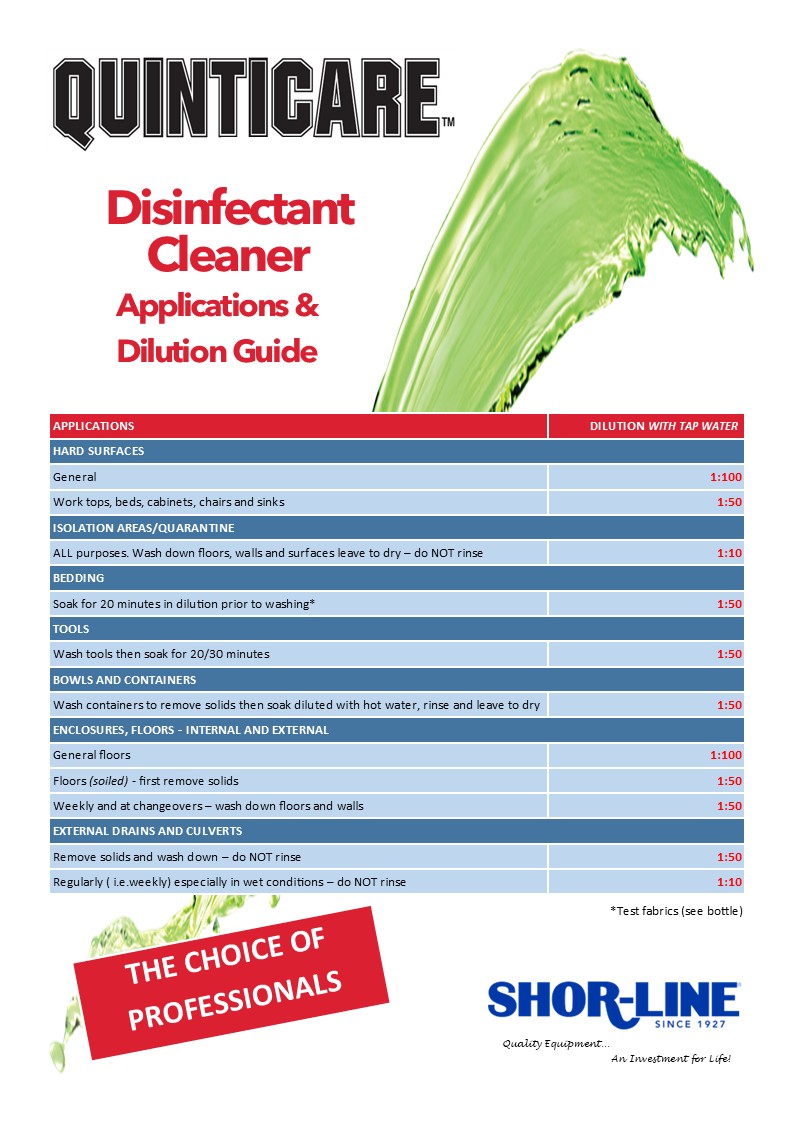 Quinticare is the disinfectant choice of professionals including Veterinary Surgeons and Veterinary Hospitals.